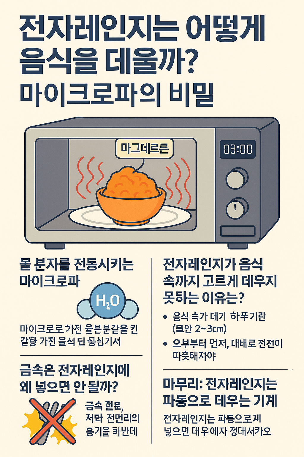 이 원리를 알고 나면, 전자레인지의 사용법도 더 스마트하게 활용할 수 있겠죠?