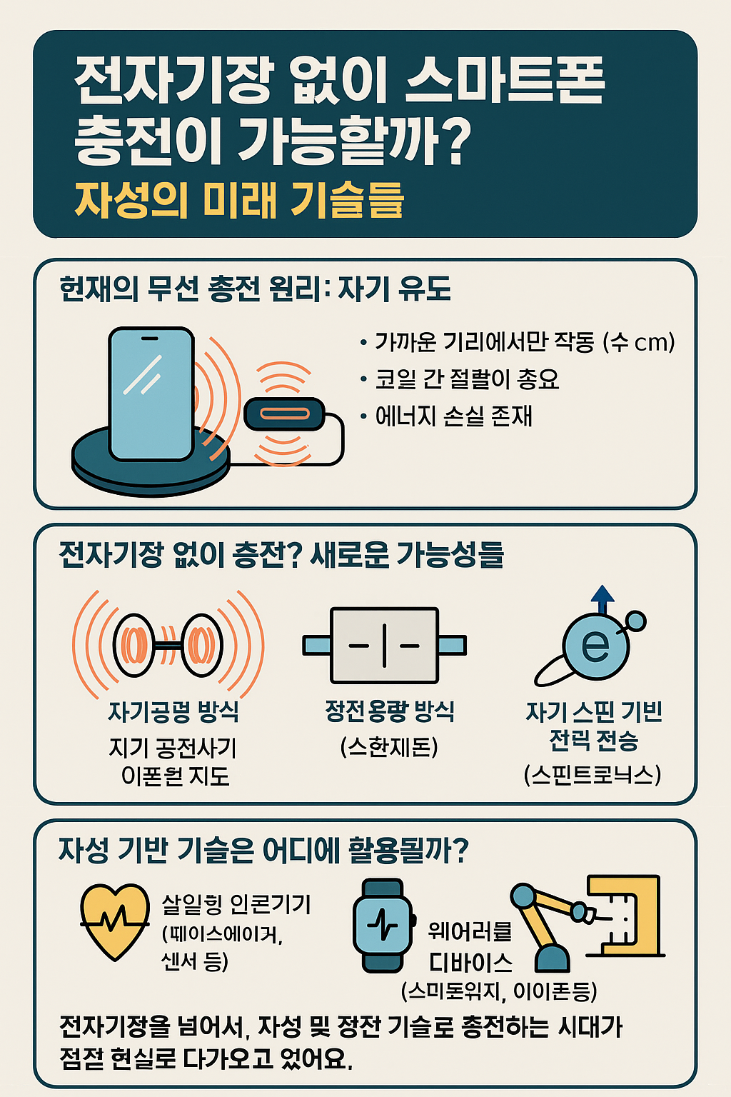 그렇다면 전자기장이 전혀 없는 상태에서도 충전이 가능할까요? 이번 글에서는 무선 충전의 원리와 함께, 자성 기반의 차세대 에너지 전송 기술에 대해 알아봅니다.